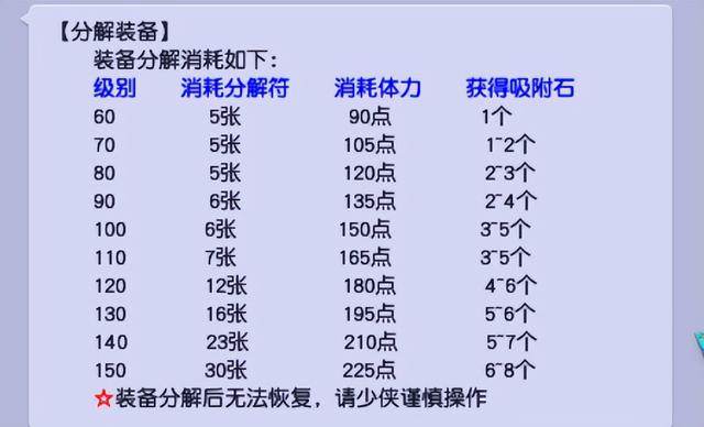 由于吸附石获得的数量随机,这里按照平均值来计算,比如分解70装备获得1.5个,80装备获得2.5个。