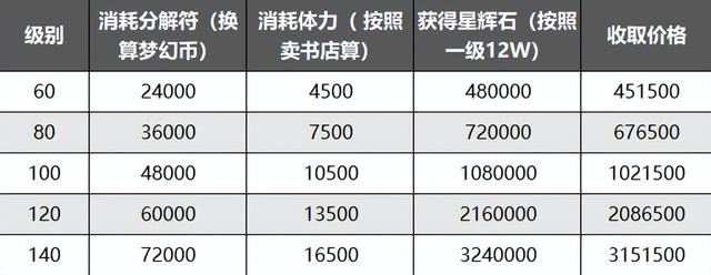 首先这是梦幻精灵的计算,把其中的分解符、体力、星辉石都换算成梦幻币以后,用收益减去成本,可以得到收分解符灵饰的价格表。
