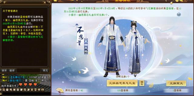 根据活动介绍,只要凑齐120把【盈香扇】就可以兑换礼盒,礼盒包括永久的时装、定颜珠和发型图,说实话男号还是蛮帅的