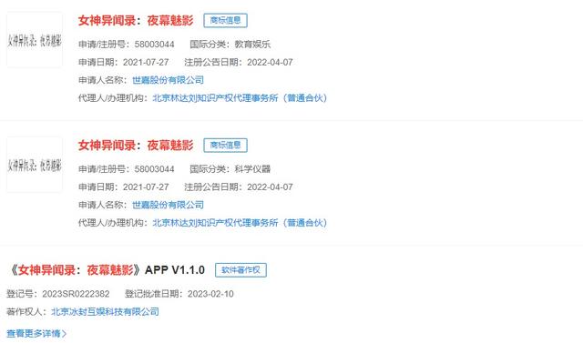 根据天眼查显示,“女神异闻录:夜幕魅影”的商标已由世嘉在2021年注册,而“女神异闻录:夜幕魅影”APP信息在今年2月10日完成了登记,著作权人为北京冰封互娱科技有限公司,这是完美世界的子公司。