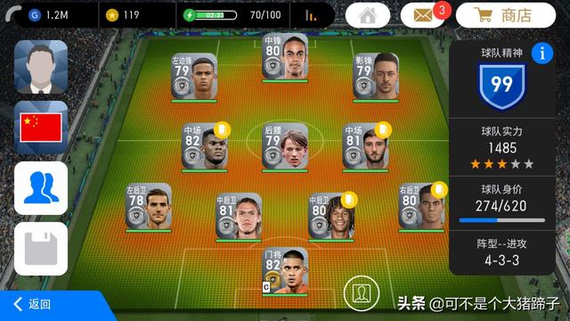 球队:首先我们要控制续约成本,将球员的平均能力值控制在80出头,尽量选用银球妖人或者实用的金球球员。同时球队精神不能太低,至少要到90以上,否则球员配合容易出现失误,面对超巨难度的电脑小小失误就会导致丢球。