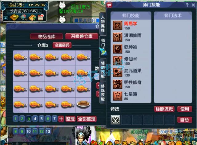 师门技能有5个是150级的,可以看出来之前应该是停的129级,后来才升到的159级,技能一级都没有点。