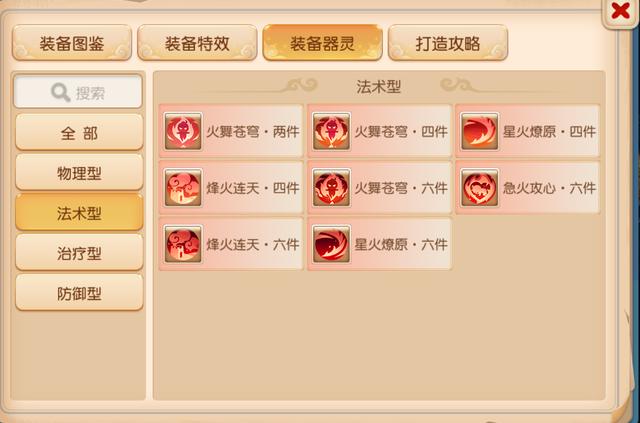 (2)器灵对于平民玩家选择基础属性好点的火舞两件套就行,对于较高端的玩家选择火舞四件套或是星火四件套都可以。