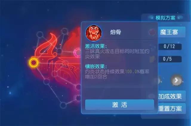 当然,熔骨的镶嵌效果也有调整,调整之前是增加自身等级*0.4物理防御,这个效果对于魔王来说实用性不大。调整后,灼炎状态持续效果100%概率增加2回合。也就是说,这样的效果进一步加强了魔王自己创造输出环境的能力,降低了魔王对外部输出环境的依赖。