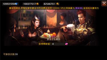 求婚成功后,夫妻可以举办一场婚礼宴席,并邀请全服的玩家前来祝贺。宴会中所有的收益,都将按照一定比例返还给婚礼的举办者。