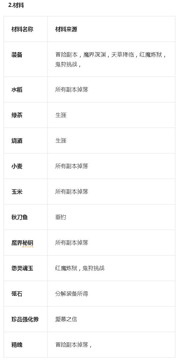 五.游戏货币及材料的来源