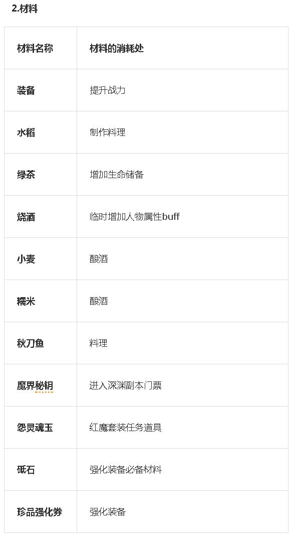 六.游戏货币及材料的消耗