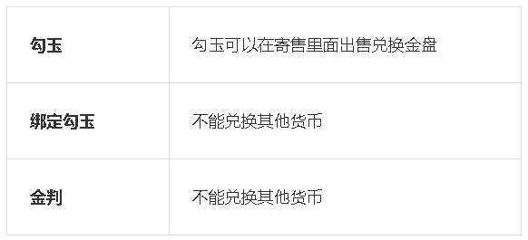 1.游戏内有金判,勾玉,绑定勾玉共3种货币,其中勾玉和绑定勾玉是游戏商城通用货币,金判是玩家之间流通货币。
