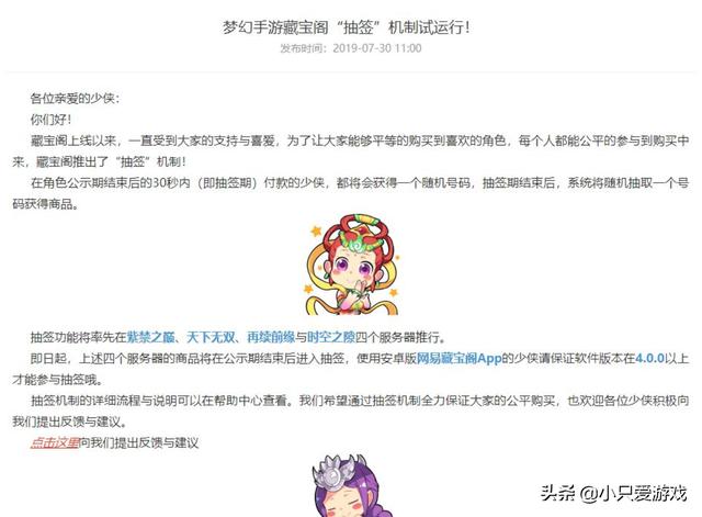 而今天就在藏宝阁中又一条新的公告,“抽签”机制试运行了!