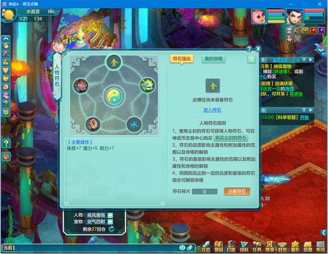 需要购买尘封符石,购买符石需要3000左右的神武币,随机开出符石,添加到五个位子增加自身属性,很简单的玩法,只要你神武币多就能开出好的符石。