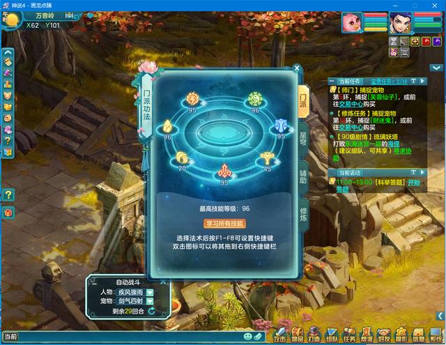 2:建议门派技能开始只学习5个技能,这样能大大利用好经验