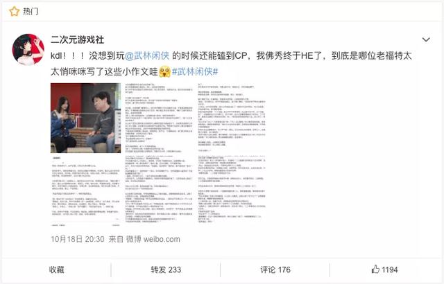 微博平台上,《武林闲侠》的话题热度持续升温,不少玩家自发进行宣传,在相关话题下,甚至有写手专门写起了番外小说。
