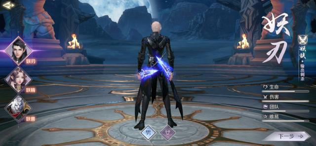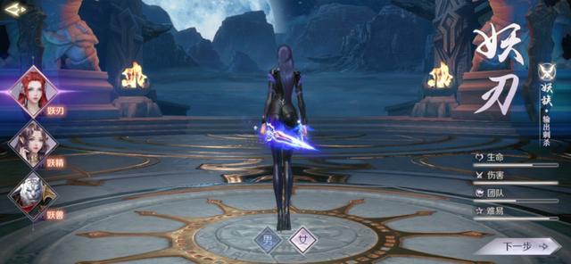 妖族分为:妖刃(男妖刃、女妖刃)、妖精(女【可进行宠物抓捕】)、妖兽(男【可变身老虎】)
