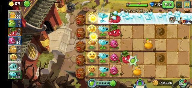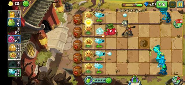 虽然火葫芦与寒冰射手的冰冻有些相克制,但是仔细想也是没问题的,寒冰射手会减速僵尸,迫使僵尸聚集到一起,然后火葫芦一烧都没了。还有几个需要注意的地方就是,寒冰射手本身的攻击并没有多强,仍然需要其他植物的协助攻击,在火葫芦进入冷却状态后。因为寒冰射手和火葫芦的消耗太阳数量本来就不少,这里我们可以选择卷心菜投手,还有玉米投手来助力。还有一点就是能量豆的使用了,通常来说只要有了寒冰射手,那一半来说引信是不会被点燃的,真到了那一步也是有冰冻生菜来解决,如果是多排被点燃就用冰冻生菜的能量豆大招。而在这一天能量豆的数量确实也不少,所以尽量喂给范伤型的投手植物,这要应付大波僵尸流轻而易举了。