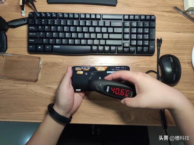 直接开启最大的档位的时候发现,原本40℃左右的手机在有散热背夹的帮助下仅仅不到15分钟温度就降到了33℃以下,为什么我知道呢,这是因为我的这款温度枪在33度以下是不显示的。