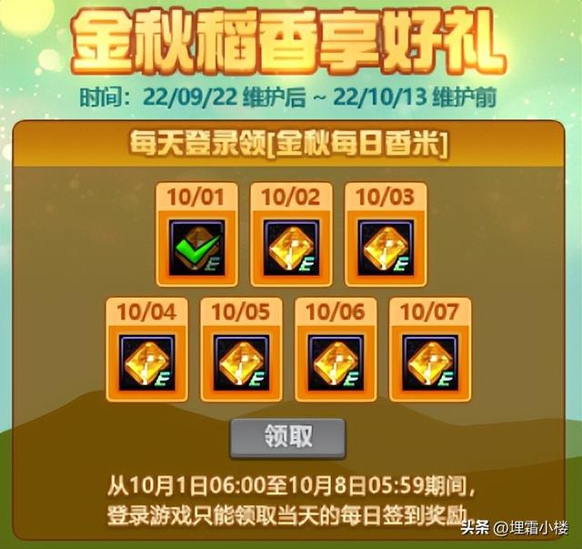 十月一日至十月七日,期间每天登陆游戏即可领取一个金秋金绿柱石礼盒,打开之后可以随机获得101-1010个金绿柱石,不知道各位冒险家的运气如何呢?