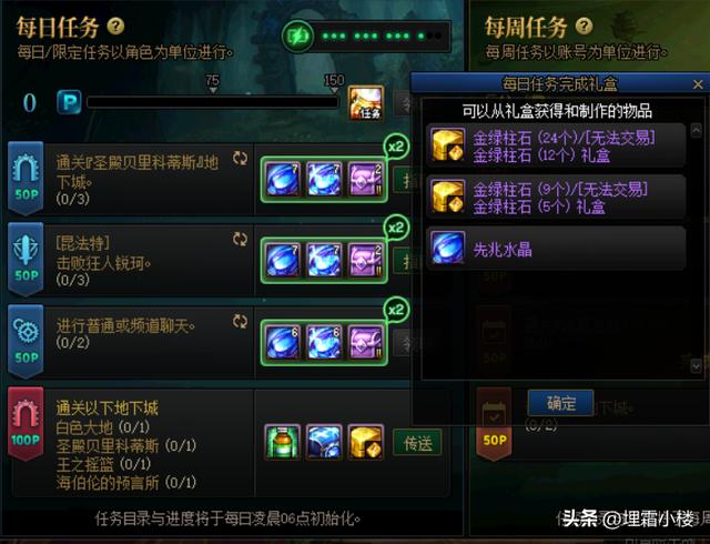 完成每周任务还有金绿柱石赠送。