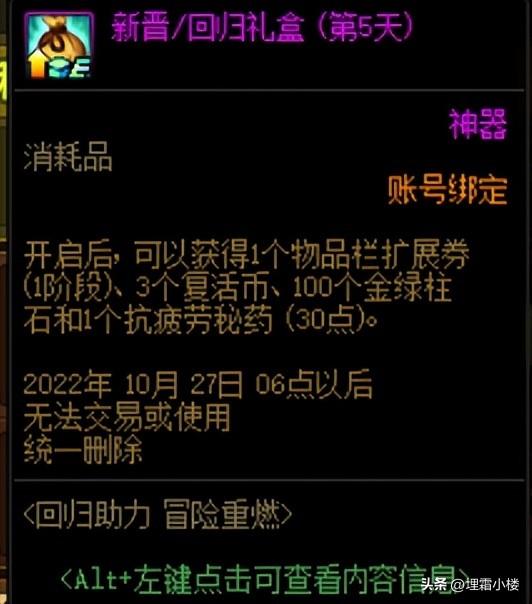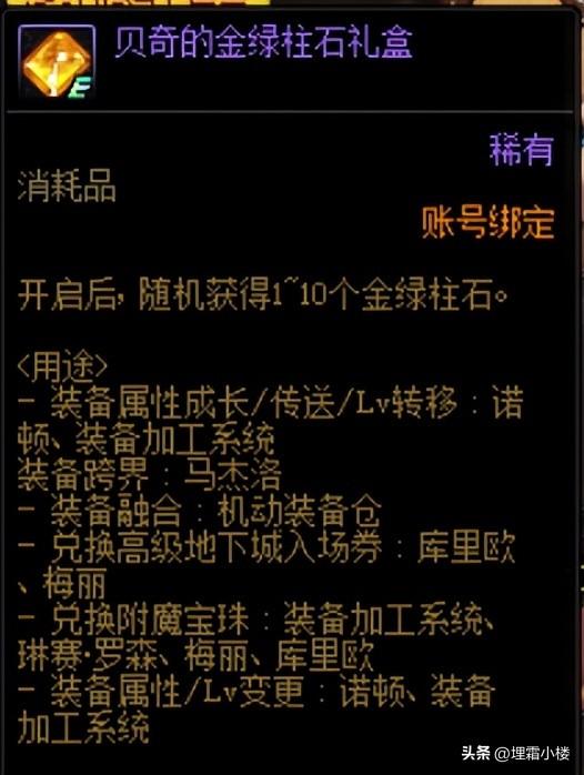十月一日至十月七日,期间每天击败任意难度105级普通地下城的领主都可以额外获得一个金绿柱石礼盒,打开之后可以随机获得1~10个金绿柱石。