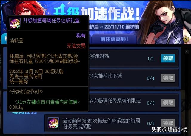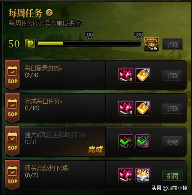 完成每周任务当中的领取1次畅玩系统每周奖励还可以领取200无法交易的金绿柱石。