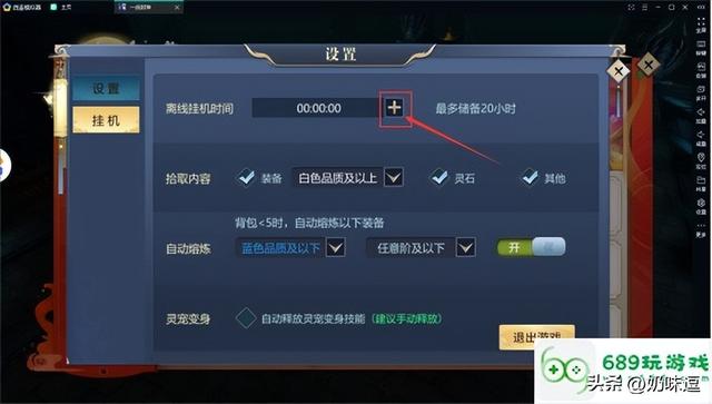 单击“继续”按钮,弹出设置菜单,选择右边这个“挂机”选项