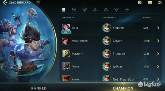 这个排行榜界面,还融入了一个手游专属的“战力系统”,玩家的英雄专精程度会变成战力,战力可以在全服务器进行排名,LOL手游是没有PC版本的熟练度系统。玩过王者荣耀的玩家都知道,高分段很多人都在刷各种英雄的战力,从而争夺更高的英雄排名,比如广东省第一亚索这种头衔真的很有成就感。LOL战力可以通过打排位赛和更高场次胜率来提高。