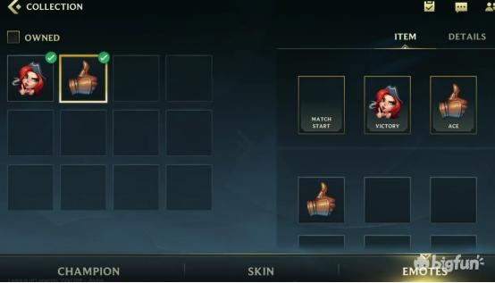目前游戏中的收藏界面,只有三个页面,分别是英雄、皮肤和表情。游戏还在测试阶段,所以提供的表情数量非常少,不过表情界面已经可以预设表情了,比如进入游戏时、获胜时和团灭时,表情在这种特定情况下会自动亮起。