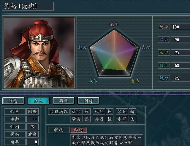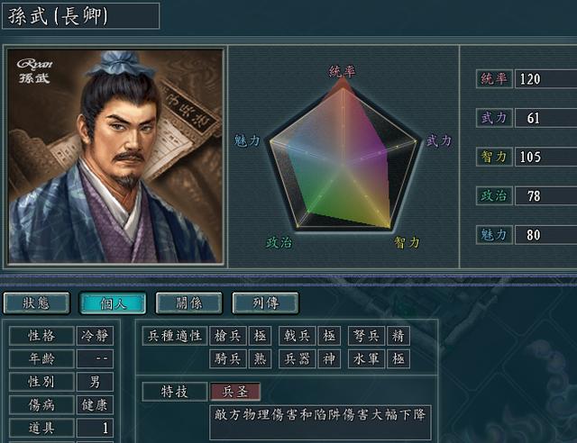 对于血色衣冠这个MOD,里面的牛叉人物非常多,很多原本三国里面的厉害人物在这里面很少有能排上号的。这里面不仅对于武将的属性上面都有升级,属性都突破了100,在4.0版本中,属性最高都是120。另外兵种适性也有进一步的升级划分。调整了老版本的C<B<A<S的等级划分。变成了初<熟<精<极<神<圣,这六个等级。不同的等级对兵种的攻防影响都非常大,其中神级和圣级简直突破了边际。而这个圣级兵种所属的武将更是少之又少,纵观整个血色里面的几百号人物,每个兵种都仅仅只有唯一的武将拥有圣级。对此以下就是小编对这类武将所给出的介绍: