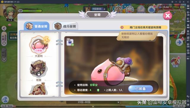 完成我们的任务之后就能拿到一只超大的粉色波利作为我们的坐骑啦,虽然只是最初始的,但是也比走路要拉风很多不是吗?不过波利不是战斗坐骑,只能在跑图的时候使用,战斗的时候会直接消失躲起来。