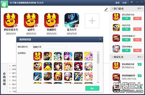 新建模拟器时只需点击桌面上的“+”号图标,然后选择你想用这个模拟器玩的游戏的LOGO,接着给这个模拟器命名,最后点击确认就可完成增加模拟器操作。在下一次打开叶子猪手游模拟器时,便能很快的分清楚哪个模拟器是属于哪个游戏的,并且是大号还是小号等等。