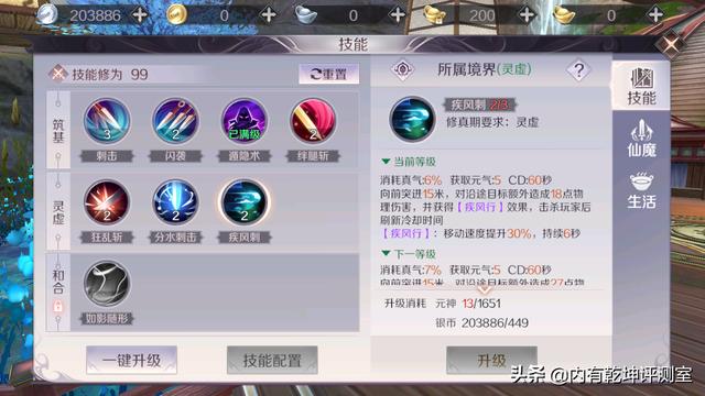 再看位移技能疾风刺,看似是一个追击攻击技能,并且疾风刺确实可以实现迅速位移至目标之前开启爆发式输出,但其实在PVP战斗中,疾风刺还可以作为拉开身位躲避伤害的技能使用,于是就变成:眼看他输出了,眼看他秀起来了,眼看他跑掉了。
