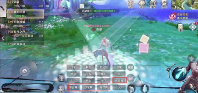 1、这个任务的要求非常简单,大家只需要打开动作栏目,在其中找到舞蹈,将所有的舞蹈跳一遍之后就可以完美的完成任务了,轻松又简单吧;完成之后直接点击左上角的【舞池巨星】任务自动寻路到舞池的中央找到羽族公主对话她在夸赞你一番之后就会将奖励领取到手了;奖励内容包括1枚幻仙石和武林高手紫色隐藏称号,是不是非常有趣呢?戴着这个称号就可以在广场上和其他人炫耀自己的舞姿了;