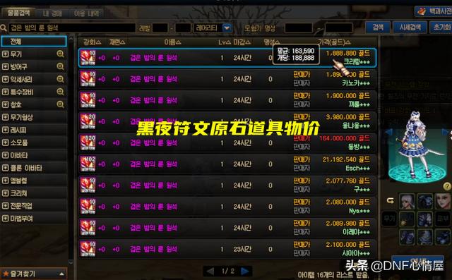 符文也能交易!单价还蛮高的,如图所示“黑夜符文原石”,拍卖行18W金币一个。当玩家使用后,可以从高级、稀有、神器符文中,随机的获得1个。符文需求的比较广,特别是有预约升级活动,价格会慢慢上涨。