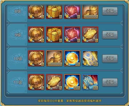 红色伙伴碎片、红色法宝碎片、宝石等稀有道具现加入家族周福利,家族等级越高可累积领取的奖励越丰厚!