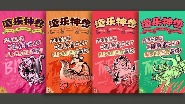 这四位通晓音律的“神兽”伙伴一起出现在了我们的海报中,也将成为我们新的乐队品牌的“形象代言人”,陪伴我们的新品牌共同成长!