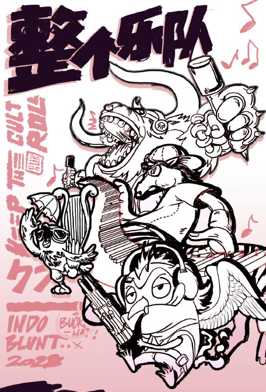 因为“其声如雷”,在我们的品牌形象中,夔牛也理所当然地发挥其所长,成为了乐队的vocal担当。它手里握的可不是手榴弹,而是两支麦克风,随时准备一展歌喉。