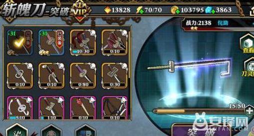 死神斩之灵游戏中斩魂刀数量和种类比较多,斩魂刀有橙色、紫色、蓝色几种品质,品质越高斩魂刀的属性更强。