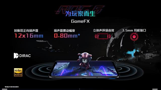 ROG6天玑系列上的GameFX音频系统包含对称双扬声器,可呈现获得真正均衡的立体声效果,机身配备便携式3.5mm耳机插孔,可外接有线耳机使用。ROG玩家国度与瑞典数字音频先驱Dirac进行了音质优化,使ROG6天玑系列成为罕见的“音频野兽”,给玩家来带沉浸式的音频体验。ROG6天玑系列采用了Dirac Virtuo™空间音频解决方案,其采用专利算法,使内置扬声器散发出身临其境的立体声,同时提升了扬声器整体音质。