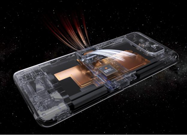 全新的矩阵式液冷散热架构6.0 Plus冷却系统包括360° CPU冷却技术,真空均热板相较于ROG5面积增大了30%,石墨烯面积大了85%,居中的SoC设计亦可增加核心散热效果。通过智控中心,游戏玩家可在ROG6天玑系列上实现对不同游戏的性能调整设置,从而在任何游戏场景中都具有先手优势。