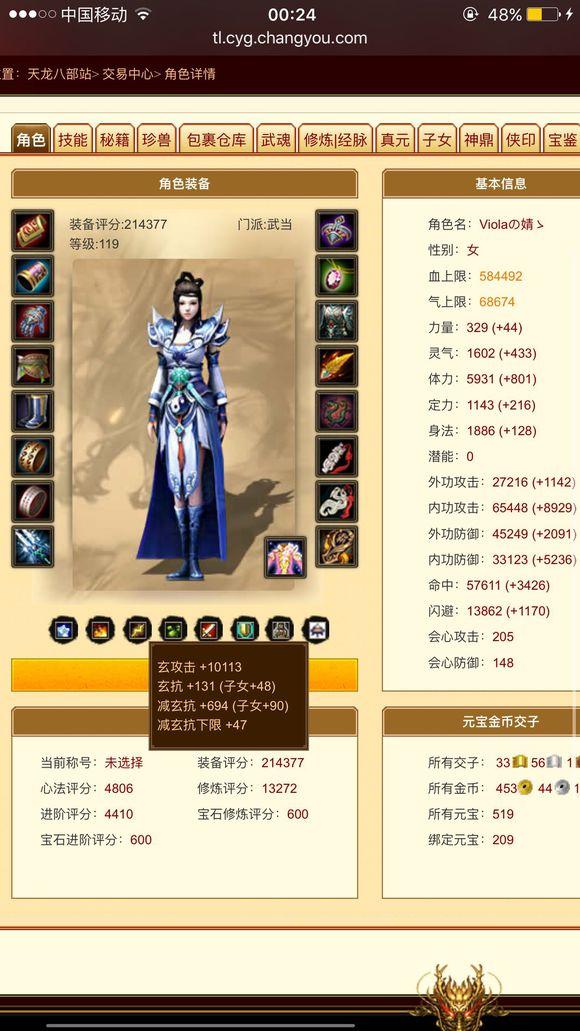 有位少侠就在天龙贴吧上晒出了自己的四级火武当属性面板,声称自己是同等级配置里火武当第一人,在线求超越。