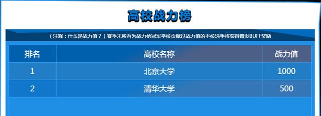 参加高校赛,不仅仅为自己而战,更是为母校而战!高校战力榜秋季赛全新出炉,无论你参与哪一项目赛事,都将能为自己的高校贡献战力值。赛季末高校榜冠军高校,所有参加过高校赛并为冠军高校贡献过战力值的此校学生都将会获得高校群体BUFF奖励!