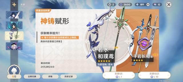 先说一个很有意思的现象,部分玩家出现了抽到了武器,但是角色没出现的情况,没必要为了武器去把角色给毕业了,和璞鸳留着等以后出了吃攻击的站场c,到时候肯定能用上,现在可以先留着。就目前的版本来说,不论是和璞鸢+魈,还是单独的魈,或者单独的和璞鸢,实际上怎么搭配,强度都不算出色,所以这个武器,更多的是为了外观毕业的。