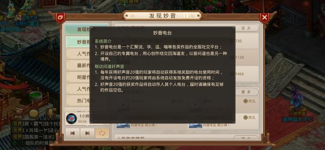 角色等级≥70级的道友,在非战斗状态下可通过点击游戏界面右下角"展开-社交-电台"的方式打开妙音电台,战斗中则可以在左上角功能集合中找到"电台"入口,此外,道友们还也可以找到"天墉城-妙音仙子"NPC进入妙音电台。