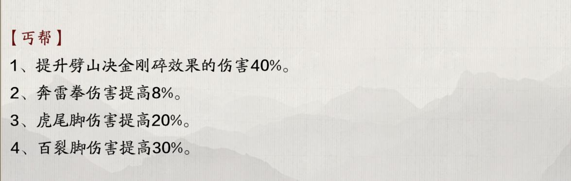 至于丐帮就更加值得尊敬了,丐帮的机制其实很强,奈何系统的设置和技能之间的衔接及伤害可能没做好,所以才导致这个门派在论剑场的表现不佳。