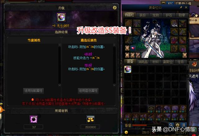 升级只是才开始!遴选绝望矿石较坑不过,升级完毕才仅仅刚开始,遴选比较坑!“雨中情”首当其冲,花了70次遴选,单次要300个绝望矿石,属性都没有完美,让旭旭宝宝都苦笑不已。升级改造SS装备,没太多的问题,绝望矿石达标就行。然而,遴选词条是随机,堪比洗神话装备,要3个全拉满,难度无形之中提高。