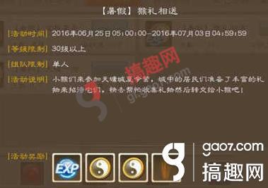 活动奖励:经验、道行、武学、金猴毫毛、商城道具