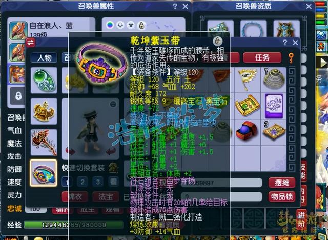 120级永不磨损碎星诀套腰带,打了9锻黑宝石。