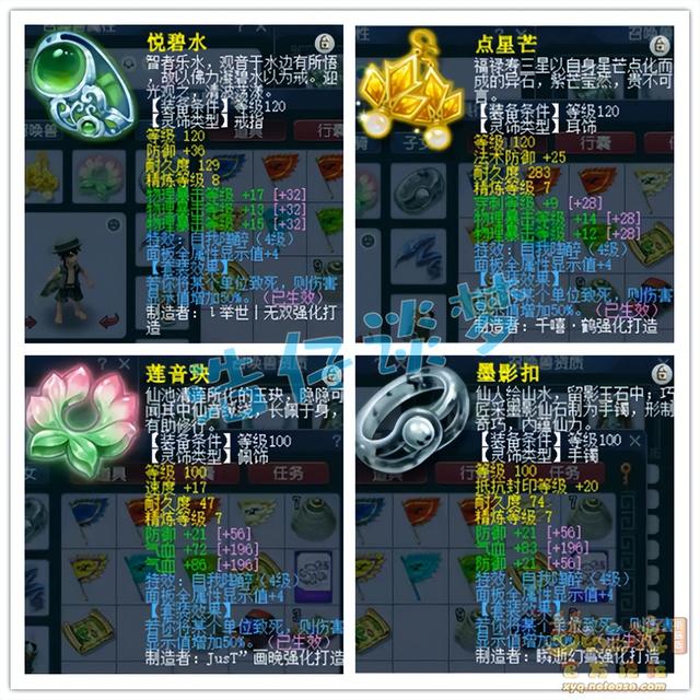 戒指下排选择了三物暴,耳饰下排双物暴一穿刺,佩饰下排双气血一防御,手镯下排双防御一气血,特效选择了自我陶醉,只要打死怪,数据非常亮眼。