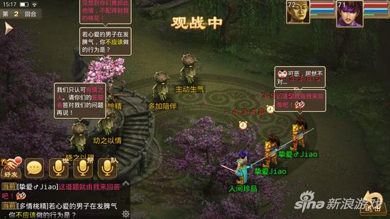 当玩家连续答对2次之后就会进入下一阶段,这一阶段玩家不用答题了,直接开始战斗,玩家只要解决桃精的所有手下小怪就能获得战斗的胜利!