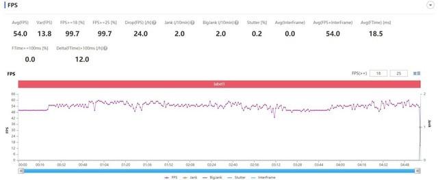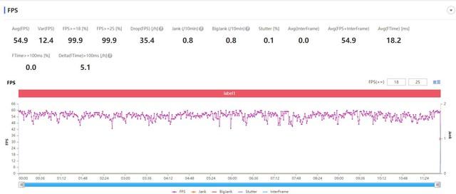 未开启极限稳帧功能,平均帧率54.9