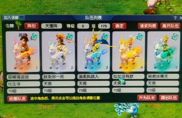 这个人的五开就有点意思了,一个是等级卡在了70级。这么做主要是抓鬼,还有就是70级有新的任务可以刷了。门派的选择是一个化生寺辅助,加上4个天宫。这个也是挺少见到的。